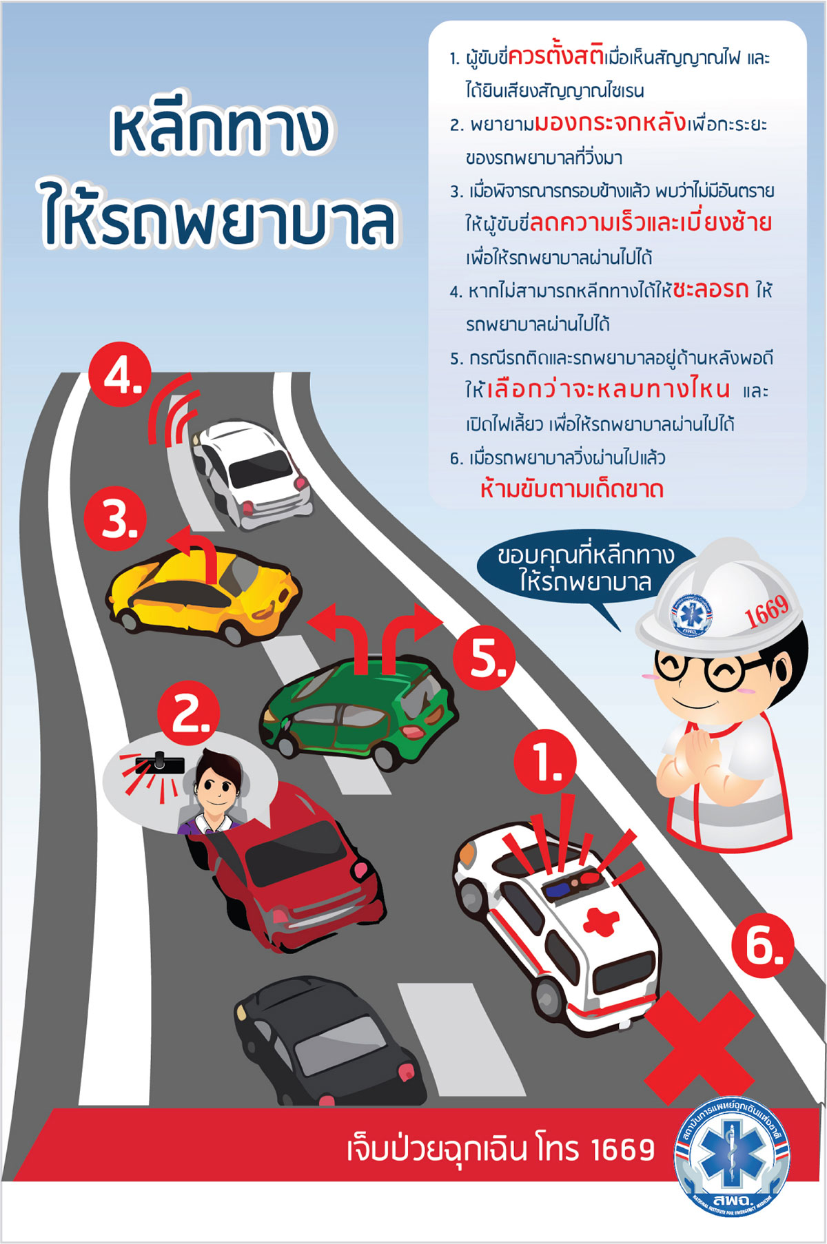 ทั้งนี้จากสถิติของสถาบันการแพทย์ฉุกเฉินแห่งชาติ พบว่าผู้ป่วยฉุกเฉินวิกฤตเสียชีวิตในช่วงก่อนถึงโรงพยาบาลมากกว่า 20 เปอร์เซ็นต์ ซึ่งสาเหตุหนึ่งที่ทำให้การช่วยเหลือผู้ป่วยฉุกเฉินวิกฤตเป็นไปอย่างล่าช้าคือสภาพปัญหาของการจราจรที่ติดขัด และความรู้ความเข้าใจเรื่องการหลีกทางให้กับรถพยาบาลฉุกเฉินของประชาชนที่ยังมีไม่เพียงพอ ดังนั้นจึงมาแนะนำดังนี้